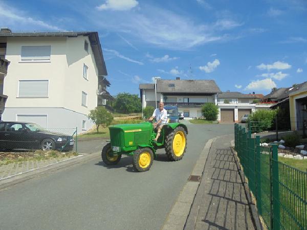 Seit ich im Ruhestand bin, restauriere ich einen John-Deere-LANZ , Typ 300. Ich habe versucht, einen noch gut erhaltenen zu bekommen, aber 50-jährige Oldtimer-Traktoren sind mittlerweile rar geworden und den ersten, den ich bekommen konnte, habe ich mit einer abenteuerlichen Fahrt aus der Eifel in den Taunus gebracht. Dieses Gerät war sehr heruntergekommen und stark korrodiert, so dass allein die Karosserie-Arbeiten mehr gekostet hätten, als einen gut erhaltenen zu erwerben. Das Glück war mir hold und ich fand noch einen weiteren John-Deere-LANZ Typ 300 in gutem Zustand. Zugelassen war er auch noch. Nun bin ich stolzer Besitzer von zwei John-Deere-LANZ 300 - Traktoren, sowie einem 30-jährigen JOHN-DEERE 3040 (siehe unter Traktorreisen ). Im Sommer 2015 konnte ich auch den JOHN-DEERE 710 meines Bruders erwerben. Mehr als vier Traktoren geben die Stellplätze auf meinem Grundstück nicht her.