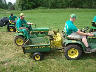 Das Gras wurde mit mehreren Rasentraktoren gemäht und mit einer Schneefräse auf den Anhänger des anderen Fahrzeuges geschleudert. Wer hätte als Kind nicht gerne mit solch tollen Geräten gespielt.