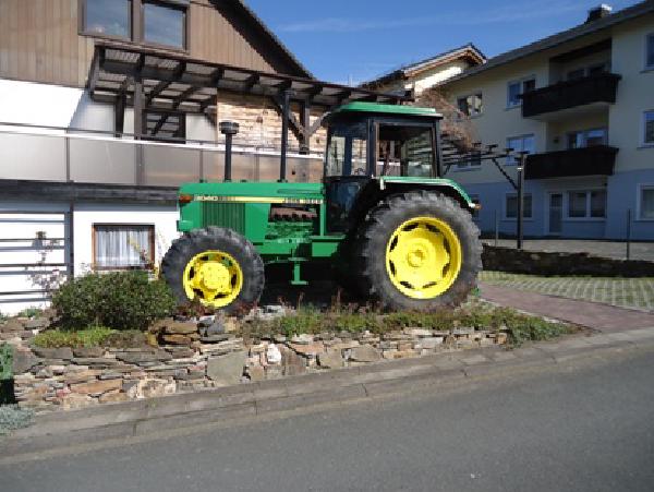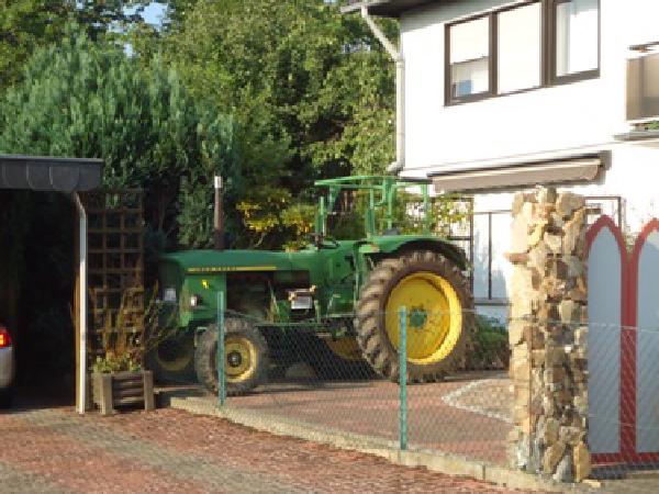 Seit ich im Ruhestand bin, restauriere ich einen John-Deere-LANZ , Typ 300. Ich habe versucht, einen noch gut erhaltenen zu bekommen, aber 50-jährige Oldtimer-Traktoren sind mittlerweile rar geworden und den ersten, den ich bekommen konnte, habe ich mit einer abenteuerlichen Fahrt aus der Eifel in den Taunus gebracht. Dieses Gerät war sehr heruntergekommen und stark korrodiert, so dass allein die Karosserie-Arbeiten mehr gekostet hätten, als einen gut erhaltenen zu erwerben. Das Glück war mir hold und ich fand noch einen weiteren John-Deere-LANZ Typ 300 in gutem Zustand. Zugelassen war er auch noch. Nun bin ich stolzer Besitzer von zwei John-Deere-LANZ 300 - Traktoren, sowie einem 30-jährigen JOHN-DEERE 3040 (siehe unter Traktorreisen ). Im Sommer 2015 konnte ich auch den JOHN-DEERE 710 meines Bruders erwerben. Mehr als vier Traktoren geben die Stellplätze auf meinem Grundstück nicht her.